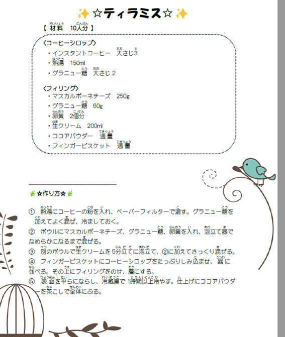 市民まつり ワールドレストラン トゥルル&ティラミスレシピ